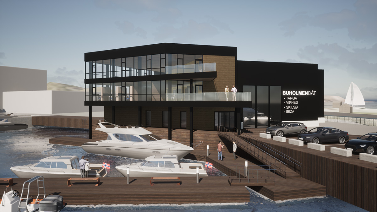 Parallelt med kjøpet av Burøyveien 11 ble det startet en prosess med omregulering av område til også å inkludere en ny driftsbygning for Buholmen Båt, med tilknyttet bølgedemper og bryggeanlegg. Sammens med Rambøl og Gnist Arkitekter ble det satt i gang arbeid med å utforme en komplett kravspesifikasjon. Selv om vi hadde erfaring fra tidligere med å sette opp større industribygg, var det stor usikkerhet knyttet til kostnadene for et slikt anlegg. Kravspesifikasjon, med all nødvendig dokumentasjon, ble sendt ut på anbud januar 2021. Dette fordelt på en totalentreprise for bygg, og en entreprise for leveranse av bølgedemper med tilknyttet flytebryggeanlegg. Vi var heldige og fikk god respons i markedet med til sammen ni tilbydere, fem på totalentreprise bygg og fire på bølgedemper med tilknyttet flytebryggeanlegg. Etter forhandlinger ble det skrevet kontrakt for oppsett av bygg med Moldjord Bygg og Anlegg AS, og Marina Solutions på bølgedemper leveranse. Prosjektet er forventet ferdigstilt 1. kvartal 2023. Vi gleder oss og er veldig spente.